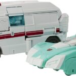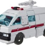 Neither Ratchet nor Lifeline seem to present any unexpected surprises. Ratchet has a new robot head, and an added lightbar on the van roof topper, but otherwise shows little or no sign of evident mold changes. Lifeline looks like it’s going to be a direct redeco of Arcee with no mold changes at all.