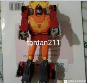 Hot Rod is believed to be a Voyager, and looking at this photo, it’s fairly believable, with little extras like hinged fingers evident. It’s been speculated that Hot Rod may be a Voyager equivalent to Earthrise Cliffjumper, which is to say that it would be similar in volume to a Deluxe, but with additional complexity and number of parts (including accessories) afforded by the Voyager price point’s greater budget. The hands may help to demonstrate this, as the closed hands should be 5mm peg compatible, but look a little large relative to the rest of the robot.
